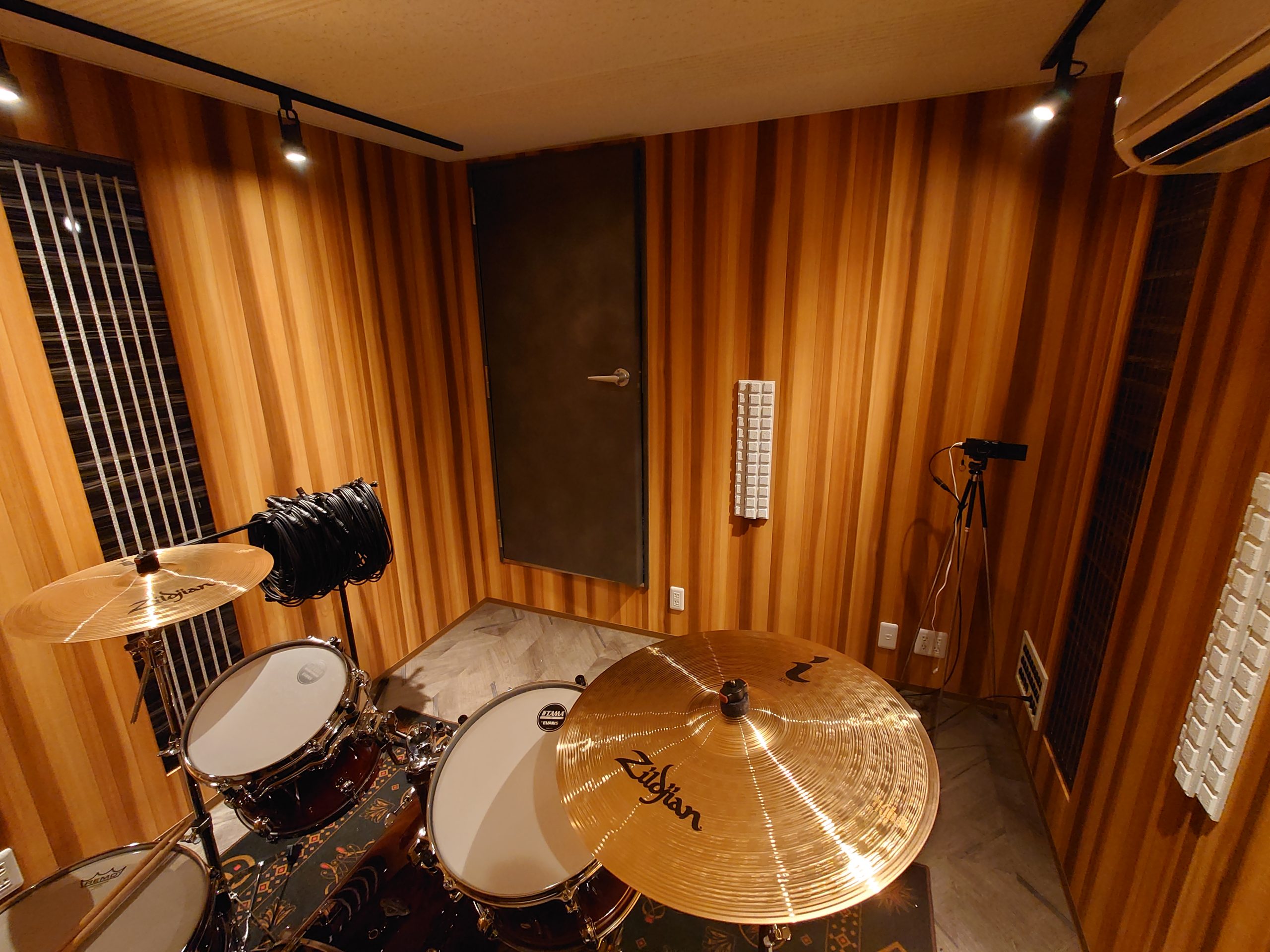 ドラムを演奏し、フルバンドでもRECが対応できるように、レコーディングスタジオを併設。